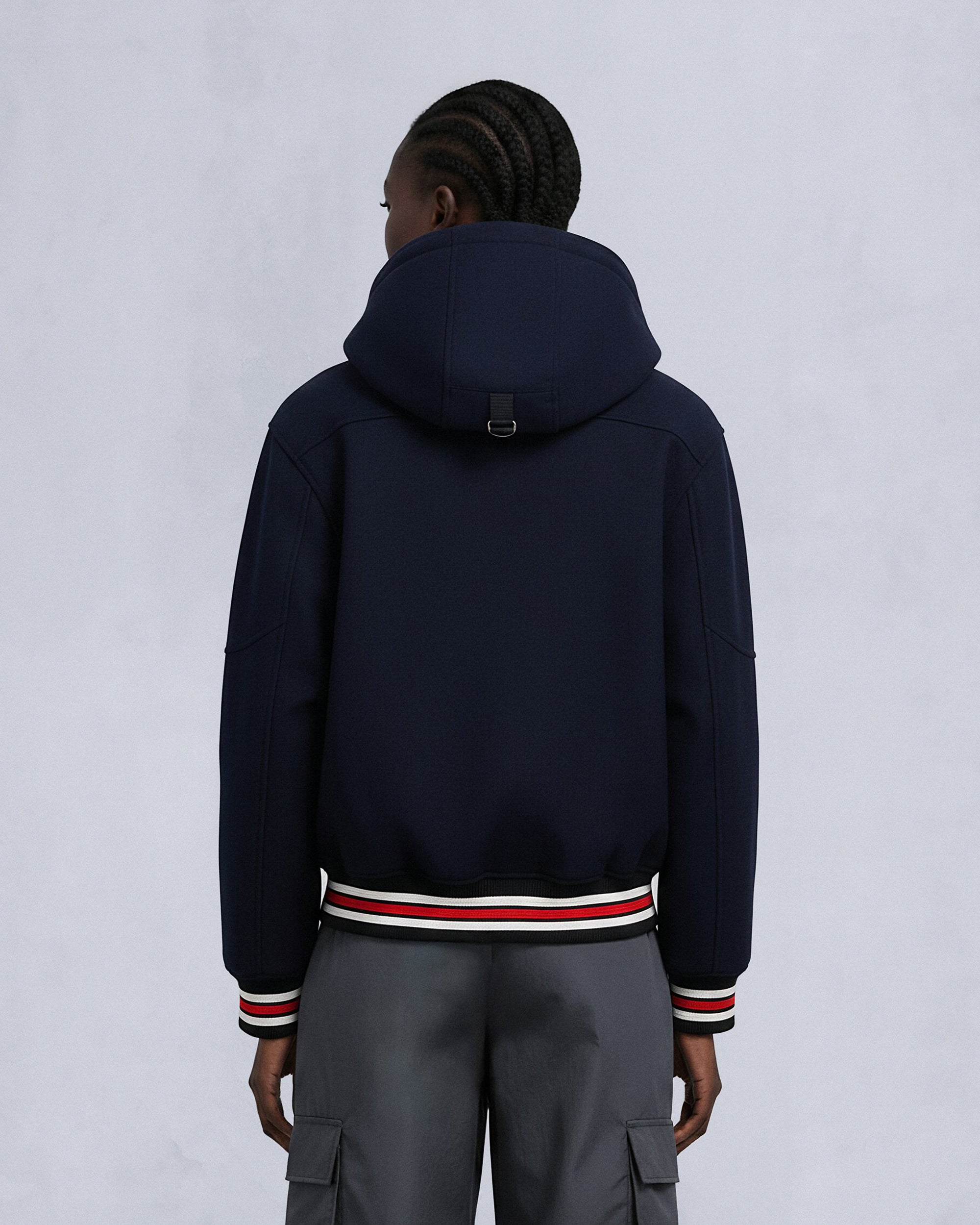 - Removable Hood with Removable Shearling Trim And Pom Poms